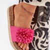 Women’s sandals perfect for hot days, set on a cork platform with a braid, combine comfort with a summer style. In front on the strap there are decorative, numerous fabric flowers that add charm. The delicately profiled insole made of eco leather ensures comfort throughout the day. Excellent for summer stylizations, they go great with dresses, skirts or shorts, bringing lightness and freshness to every look.