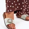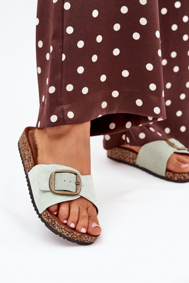 Women’s sandals made of eco suede. Set on a cork platform. They stand out with a buckle with an adjustable strap, which allows for a perfect fit to the foot. The profiled insole provides comfort throughout the day, and their simple look makes them perfect for everyday styling. Ideal for summer days, they go well with dresses, skirts or trousers, bringing lightness and style to every outfit.
