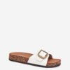 Women’s faux leather sandals, set on a cork platform, are a combination of style and comfort. The profiled faux suede insole provides comfort throughout the day, and the adjustable strap with a buckle allows for a perfect fit to the foot. Perfect for everyday styling, they go great with dresses, skirts, or pants.