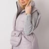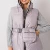 Light grey down vest with a lining, zipped. Vest with pockets, belt included.