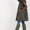 Quilted down vest with an extended cut, zippered. Vest with detachable hood, zippered pockets on the front. The vest is fully lined.