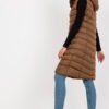 Down long zippered vest. Lined vest, with detachable hood. Slide pockets on the front.