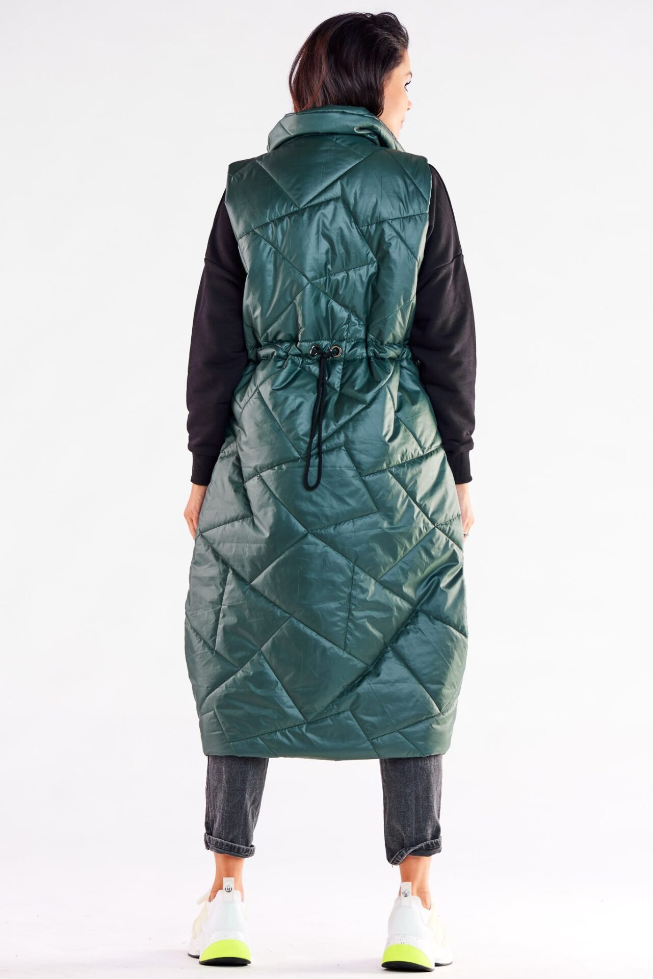 A vest with a streamlined, oversized cut is the perfect choice for cool autumn days. Its original shape can be the basis for creating many interesting stylizations. Zippered, additionally tightened at the waist allows to adjust it to any type of silhouette. The vest is fully lined.