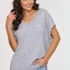 This sweater vest is a stylish and comfortable wardrobe piece that will definitely add freshness to any outfit. Made of soft material, it provides comfort for wearing all day long. The V-neck is one of the most elegant and versatile styles, gently elongating the neck and adding lightness to the whole outfit. The loose, oversized fit of the model is perfect for various body types, providing comfort and freedom of movement. The short wide sleeves add a trendy, casual touch, perfect for warmer days and also great for layering on cooler days. Made of a blend of fibers, including PBT, the vest has exceptional properties. PBT is a fiber that retains its shape and structure for a long time, maintaining its aesthetics and durability. Thanks to the elasticity of PBT, the model perfectly adjusts to the silhouette, providing comfort all day long. The sweater vest not only looks fashionable, but is also functional and comfortable. You can combine it with different wardrobe pieces, from casual jeans to elegant skirts, creating outfits for various occasions.