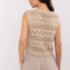 The openwork women’s vest in casual style is a fashionable and lightweight addition to everyday outfits. Made of a blend of cotton and acrylic, it is pleasant to the touch, breathable, and comfortable to wear. Sleeveless, short in length, with a V-neckline, it goes well with both a shirt and a simple t-shirt. The openwork pattern adds delicacy and lightness to the overall look, while the classic button closure emphasizes the casual, everyday character of the vest. This versatile option will work great all year round as a complement to many outfits.