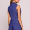 Stylish, fitted vest made of high quality cotton fabric with a matte finish. Its deep V-shaped neckline and shawl collar give the whole outfit a refined character, perfectly complementing both a shirt and when worn solo. The model is fastened with three fabric-covered buttons, adding elegance and stylistic coherence. There are imitation pockets at the front, subtly emphasizing the classic form without disturbing the silhouette lines. The slightly tailored cut beautifully accentuates the figure, and the length to the waistline makes the vest a great addition to both casual and more formal stylings. Designed and made in Poland with attention to detail and quality of workmanship.