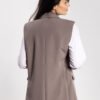 Stylish vest in a simple, classic cut is a timeless wardrobe staple. The single-button closure and lapels at the neckline emphasize its elegant character, while the slightly elongated line slims the silhouette. Practical flap pockets add a modern touch, and the versatile design allows you to pair the vest with trousers, cigarette pants, or a skirt. Perfect for both business and casual styling.