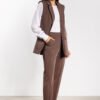 Stylish vest with a simple, classic cut is a timeless wardrobe piece. The single-breasted button closure and lapels at the neckline emphasize the elegant character, while the slightly elongated line slims the silhouette. Practical flap pockets add a modern accent, and the versatile cut allows you to pair the vest with both trousers, cigarette pants, and skirts. Perfect for both business and casual styling.