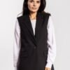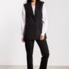 Stylish vest with a simple, classic cut is a timeless element of wardrobe. Single-breasted button closure and lapels at the neckline emphasize the elegant character, while the slightly elongated line slims the silhouette. Practical flap pockets give a modern touch, and the versatile cut allows to combine the vest with both trousers, cigarette pants, and skirts. Perfect for both business and casual styling.