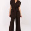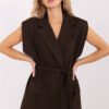 Stylish women’s material vest is the perfect choice for formal occasions and for work when you want to combine elegance and modern form. The striped pattern gives it a slim, classic character, while emphasizing its unique style. The model is made of high-quality blend of nylon, elastane, viscose, and polyester, making the vest light, comfortable, and perfectly fitting on the silhouette. The standard length and looser cut make it look casual, yet very elegant. The vest does not have a traditional fastening, instead it is equipped with a tie belt, which allows you to adjust the fit to the silhouette and create different styling options. Sewn shoulder pads add structure and emphasize the shoulder line, giving a professional, elegant look. The inner lining ensures comfort and enhances the quality of workmanship. This exceptional vest will perfectly complement elegant outfits, adding character and a modern touch.