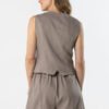 Stylish linen vest with a fitted lining, feminine cut, which perfectly complements summer stylizations. The model with a V-shaped neckline beautifully slims the neck, and the tailored cut subtly emphasizes the silhouette. Button closure adds an elegant character to the whole. The natural linen fabric provides breathability and comfort of wearing, making the vest suitable for both everyday and more elegant outfits.