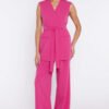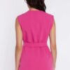 Stylish women’s vest in a regular fit cut is an elegant and modern wardrobe element that will work well in both casual and more formal stylizations. The model has a V-neckline, which subtly emphasizes the neck and neckline. The vest is without fastening, and tied at the waist with a fabric belt, allowing for a perfect fit to the silhouette and adding a feminine touch. There are imitation pockets at the front, which introduce a fashionable, minimalist accent, and a full lining ensures comfort and an elegant finish. This is a versatile model that pairs well with trousers, skirts, and dresses, creating stylish and modern sets for everyday wear and more formal occasions.