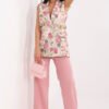 A women’s vest in a floral pattern is an elegant wardrobe piece that will work perfectly for everyday wear, work, as well as for more formal occasions or parties. The combination of a classic cut with a feminine, floral motif gives the outfit a unique character. The model is made of a combination of polyester and elastane, which ensures comfort, lightness, and a good fit to the silhouette. The standard length makes the vest look great with both pants and skirts. The vest has lapels and imitation pockets that emphasize its elegant style. The double-breasted button closure adds class and a timeless look, while also shaping the silhouette. This is the perfect choice for women who value elegance, comfort, and a fashionable design with a subtle, floral accent.