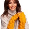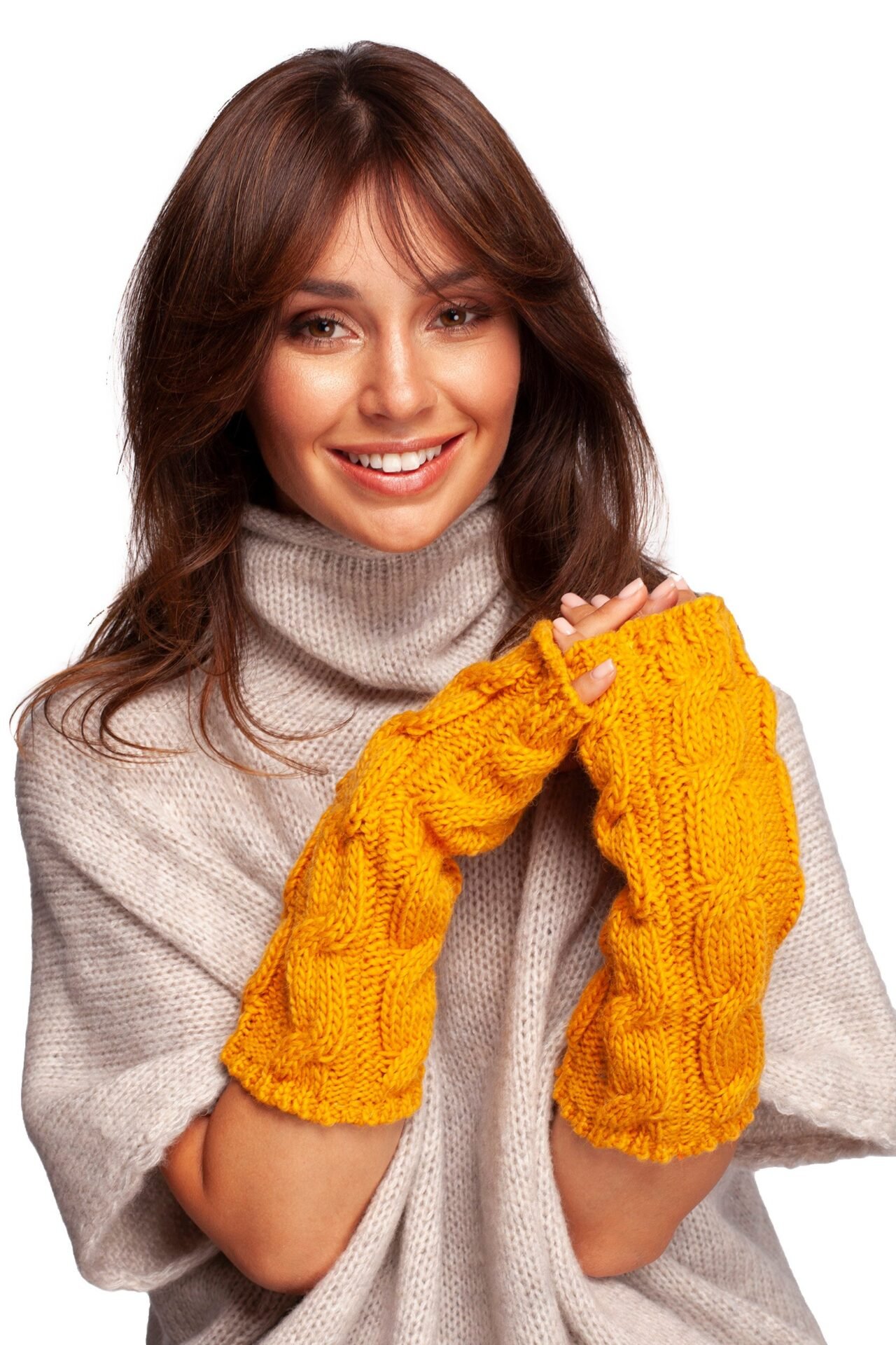 Warm and comfortable, but also elegant. Such are the tall fingerless gloves made of ribbed sweater knit.