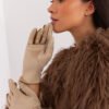 Elegant women’s gloves made of smooth material with contrasting inserts between the fingers. At the wrists decorative contrasting braided straps. Thumb and index finger with an embroidered flower, allowing you to operate the phone, without having to take off the gloves.