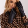 Elegant women’s insulated gloves made from a combination of two different materials. The index finger with an embroidered flower, allowing you to operate the phone, without having to take off the gloves.