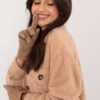 Elegant women’s gloves made of insulated fabric in a decorative geometric pattern. The index finger with an embroidered flower, allowing you to operate your phone without having to take off the gloves.