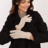 Elegant women’s gloves made of insulated smooth material. At the wrists decorative buttons. The index finger with an embroidered flower, allowing to operate the phone, without having to take off the gloves.