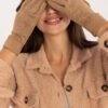 Gloves made of smooth, ribbed material, providing warmth and a stylish look on colder days. Finished with an elastic welt, they fit perfectly to the hand, guaranteeing comfortable wear. The index finger decorated with an embroidered flower not only adds a subtle, elegant touch, but also allows you to conveniently operate your smartphone without having to remove the gloves. It’s a practical and fashionable accessory, combining functionality with aesthetics, ideal for everyday wear in the autumn and winter.