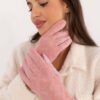Elegant women’s gloves made of insulated fabric in a decorative geometric pattern. The index finger with an embroidered flower, allowing you to operate your phone without having to take off the gloves.