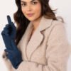Elegant women’s gloves made of warm smooth material. Decorative buttons at the wrists. The index finger with embroidered flower, allowing you to use the phone without taking off the gloves.