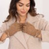 Elegant women’s gloves made of insulated material in an interesting pattern. At the wrists decorative bows. Index finger with an embroidered flower, allowing to operate the phone, without having to take off the gloves.