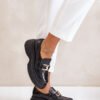 Women’s natural leather half shoes are a stylish choice for everyday wear. Rounded toecaps and a massive platform give them a modern touch. The front is decorated with a decorative chain, which adds distinction. Thanks to the elastic band under the tongue, the shoes fit the foot perfectly, and the stiffened heel counter ensures stability. Made with attention to detail, these fashionable half shoes offer not only an attractive look, but also exceptional comfort thanks to the natural leather insole.
