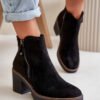 Women’s ankle boots made of soft eco suede. Set on a stable block heel. The interior is lined with shoe fleece, which provides warmth and comfort when wearing. This model has rounded toes and is fastened with a zipper, which makes it easy to put on and take off. Perfect for autumn and winter stylizations.