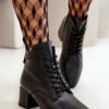 Women’s ankle boots from the Vinceza brand. Made of natural leather. Mounted on a stable heel. A lace-up model with an additional zipper closure. Rounded toes. The inside is lined with shoe fur. There is a decorative, small detail on the side of the upper.