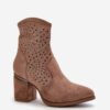 Elegant women’s lace-up ankle boots made of high-quality eco-suede. Set on a stable block heel. Pointed toes. The model fastens with a zipper, ensuring comfort and ease of putting on. Perfect for various occasions, these boots will be a stylish addition to your wardrobe.