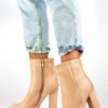 Stylish beige boots made of ecological suede, ideal for the autumn-winter season. The high upper of 13 cm and leather insole add elegance and comfort. The boots have no insulation, which makes them versatile and will work well on warmer days. The 10.5 cm high stiletto heel provides stability and a modern look, while the zipper closure makes them easy to put on. The pointed toe gives them an elegant, chic character that perfectly complements any winter styling.