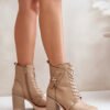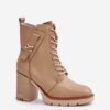 Booties from Jezzi brand, made of eco leather. Set on a stable heel in the form of a post. The model is zippered and additionally laced, which guarantees a perfect fit. The insulated interior provides comfort on colder days. On the upper there is a stylish belt decorated with gold detail, which adds elegance and emphasizes the unique character.