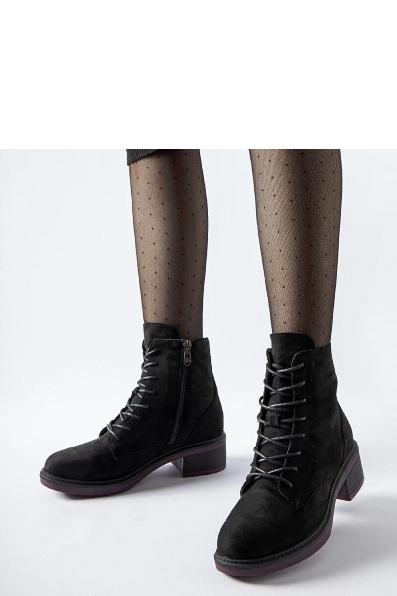 This model Teo is a classic, black ankle boots made of high-quality synthetic leather. Their characteristic feature is a purple sole, which adds originality to them. The boots have insulation, making them ideal for colder days. The comfortable rubber sole ensures comfort while walking. The zip closure makes it easy to put on and take off. These stylish boots will certainly be a perfect addition to your autumn-winter wardrobe.