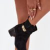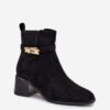 Women’s ankle boots made of eco suede are a perfect proposition for colder days. Set on a block heel, they provide stability and comfort throughout the day. The interior lined with shoe lining guarantees warmth and comfort. Rounded toes. The upper is decorated with a strap with a golden decoration, adding a unique accent, making them a perfect complement to elegant winter stylizations.