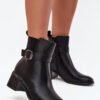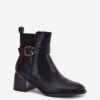 Women’s ankle boots made of eco-leather are an elegant proposal for any occasion. Set on a block heel, they provide comfort and stability throughout the day. Round toes. The zip closure makes it easy to put on, and the buckle strap adds elegance. The inside is lined with shoe fleece. Perfect for everyday outings, these ankle boots go well with various stylizations.