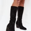 Women’s boots made of natural suede, set on a column-shaped heel, are a combination of elegance and comfort. Fastened with a zipper, they provide ease of putting on and a perfect fit to the foot. Rounded toes guarantee comfort throughout the day. These boots perfectly complement dresses, skirts, or trousers, adding style and class to any outfit.