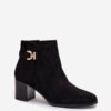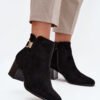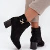 Women’s ankle boots made of eco-suede are an elegant proposal for colder days. Set on a stable block heel, they provide comfort and a steady step, while the interior lined with soft shoe lining guarantees warmth. Rounded toes give them a gentle, feminine character, and the zipper makes them easy to put on. A golden detail on the side of the upper adds a subtle, stylish accent that complements both everyday and more elegant outfits.