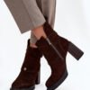 Women’s ankle boots from the Vinceza brand made of natural suede are an elegant proposition for colder days. Set on a stable column heel, they slim the silhouette. The model fastened with a practical zipper makes it easy to put on, and the delicate insulation guarantees warmth. A stylish accent is the buckle strap placed at the top of the upper, which gives the whole a fashionable and feminine character. These are versatile ankle boots that will work great in both casual and elegant stylings.