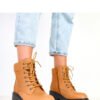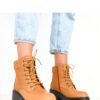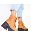 Modern and bold massive women’s ankle boots made of durable ecological leather. The model features a distinctive square toe, a 12-centimeter shaft, a sturdy 9-centimeter heel, and a 5-centimeter platform, giving them a strong, fashionable character and ensuring walking comfort. The shoes have a classic lacing complemented by a practical zipper closure, making them easy to put on. The interior is finished with unlined fabric, making them perfect for the transitional season. These chunky style ankle boots will perfectly complement urban outfits, ideal for jeans, biker jackets, or oversized coats.