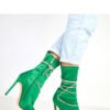 Unique women’s ankle boots made of elegant satin, which attract attention with decorative laces adorned with zircons. The slim pointed toe and slim 12-centimeter heel give the whole a sensual and luxurious character. The model has a 21-centimeter high shaft, which beautifully emphasizes the line of the legs, and a practical zipper closure ensures easy putting on. The interior is finished with soft fabric, without additional insulation, making them an ideal choice for the spring-summer season or elegant occasions. These spectacular and shiny ankle boots will perfectly complement evening stylizations, adding them class and dazzling character.