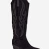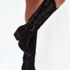 Women’s boots made of eco-suede, set on a column-shaped heel, are a stylish proposal for colder days. The shaft reaches the knee, giving them a classic look, and the decorations add a unique character to them. Pointed toes visually slim the legs, and the slip-on model with an additional zipper closure at the bottom of the shoe provides comfort and ease of putting on. Perfect for elegant and casual stylings, ideal for winter outings.