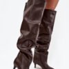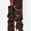 Women’s boots made of eco leather. The model is set on a low stiletto heel. A characteristic feature of the shoes is the wide shaft, which not only gives them a fashionable look, but also makes the boots comfortable to wear and easy to fit to any leg. The slip-on style makes it easy to put on and take off quickly, making the footwear practical for everyday use. These boots will work perfectly in both casual outfits and more elegant stylings, adding a refined character to them.
