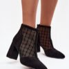 Women’s ankle boots made of eco suede and mesh are a model created for special occasions. Pointed toes emphasize the feminine character of the shoes, and the column-shaped heel adds elegance and visually slims the silhouette. The zipper placed at the back of the upper ensures comfort when putting on and a modern look. The breathable mesh combined with delicate suede creates an original combination that fits perfectly into evening stylizations. These are perfect shoes for outings, meetings, or parties that will be a spectacular complement to an elegant outfit.