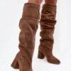 Women’s boots made of natural suede are an elegant proposition that will work great in the autumn-winter season. The soft, pleasant to the touch leather gives them a chic character, and the gathered shaft is a fashionable accent that emphasizes the unique style of this model. Set on a stable column heel, they slim the silhouette while providing comfort and confidence when worn. Thanks to the slip-on design, putting them on is quick and comfortable, and the insulated interior ensures warmth even on colder days. These versatile boots will complement both elegant outfits and casual sets, adding a feminine touch to them.