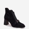 Women’s ankle boots from the Artiker brand are an elegant proposition for cooler days, combining style with comfort. Made of natural suede, they look exceptionally chic, with delicately rounded toes emphasizing their classic character. The model is set on a stable column heel, which beautifully slims the silhouette while providing comfort for everyday wear. The interior is finished with a shoe lining, making the shoes warm and suitable for the autumn-winter season. Attention is drawn to the strap with a decorative element placed at the front, adding originality and subtle elegance. This stylish footwear is perfect for complementing both casual and more formal stylizations.