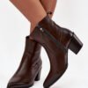 Cowgirl ankle boots made of natural leather are stylish footwear that combines comfort with a characteristic western accent. Made of high-quality natural leather, they impress with durability and aesthetics, while providing comfort during everyday use. The model is fastened with a zipper, which makes it easy to put on and take off the shoes. Pointed toes and a cut heel in the form of a column give the whole a unique character, emphasizing the slim line of the foot. The insulated interior guarantees warmth on colder days, making the ankle boots perfect for the autumn-winter season. This is a versatile model that goes well with both jeans and a biker jacket, as well as with flowing dresses, adding a touch of feminine freedom and modern elegance to the styling.