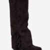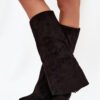 Slip-on cowboy boots made of eco-suede, set on a chunky heel, are a combination of comfort and style. Pointed toes add elegance, and the shaft adorned with fringes adds a light, boho accent. Perfect for casual outfits, they pair well with dresses, skirts, and pants, adding a touch of cowboy charm to any look.