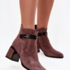 Women’s ankle boots made of natural suede are a combination of elegance and comfort. The model set on a stable column heel ensures comfort throughout the day, and the insulated interior makes it perfect for cooler days. The shoes are fastened with a zipper, which makes it easier to put on and take off. Charm is added by a decorative strap on the shaft, which emphasizes the stylish, feminine character of the model. These timeless ankle boots will complement both everyday and more elegant outfits perfectly.