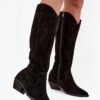Cowgirl boots made of high-quality natural suede are a combination of timeless style and comfort. The characteristic pointed toes give a feminine, stylish expression, emphasizing the silhouette and adding lightness to them. The interior is lined with felt, providing thermal comfort and convenience on colder days. Thanks to this, the boots will work perfectly both in everyday stylizations and for special occasions. This model is inspired by classic western style, which looks great when combined with boho dresses, skirts, or fitted jeans. An ideal choice for women who appreciate fashion, comfort, and the unique character of footwear.