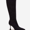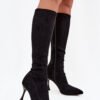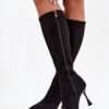 Women’s boots made of soft eco suede are a proposal for women looking for elegance with a touch of glamour. The model set on a slender stiletto heel beautifully slims the legs and emphasizes the silhouette. Attention is drawn to the spectacular decoration on the entire shaft, which gives it a unique, evening character. The side zipper makes it easier to put on. Pointy toes. These are the perfect boots for evening outings, parties, or elegant occasions when you want to look stylish and feminine.